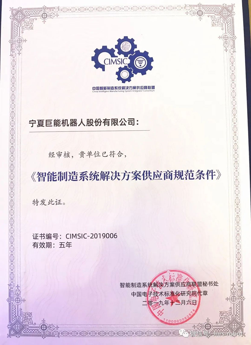 全國32家符合《工業(yè)機器人行業(yè)規(guī)范條件》之一、全國58家智能制造系統(tǒng)解決方案供應(yīng)商之一。這兩項國家工信部的認(rèn)可,標(biāo)志著巨能機器人走進了快速發(fā)展的新階段!巨能機器人將不斷以技術(shù)創(chuàng)新,開發(fā)更好的產(chǎn)品和解決方案,與客戶攜手共贏!