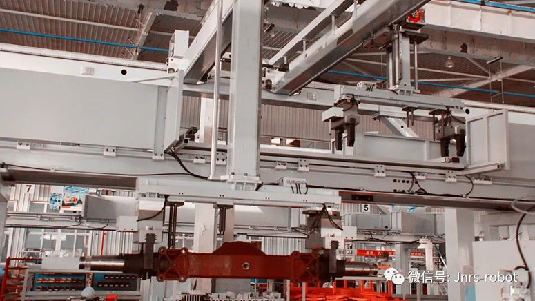 巨能機(jī)器人針對商用車車橋橋殼單機(jī)加工效率低、零件無法自動兼容、混線生產(chǎn)等問題,研制了龍門結(jié)構(gòu)的橋殼上下料重型桁架機(jī)器人。近日,產(chǎn)品通過了自治區(qū)新產(chǎn)品鑒定評審,獲得鑒定證書。