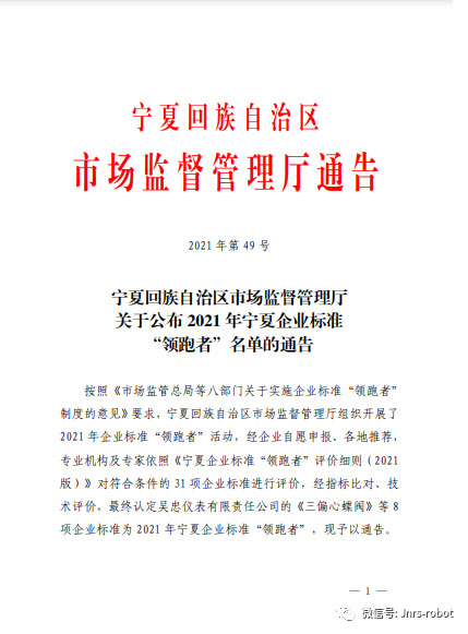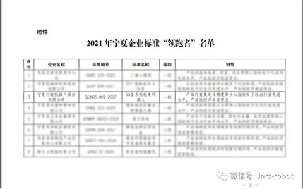 巨能機器人公司《GS系列桁架機器人》企業(yè)標(biāo)準(zhǔn)入選2021年寧夏企業(yè)標(biāo)準(zhǔn)“領(lǐng)跑者”名單。
