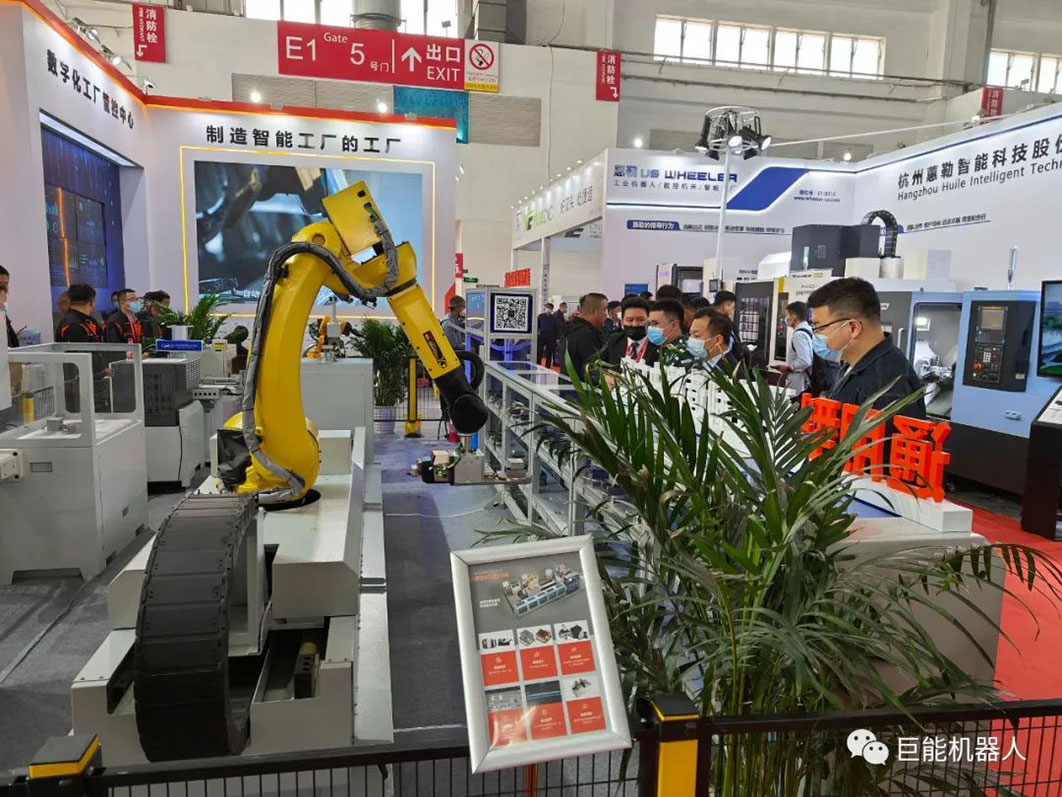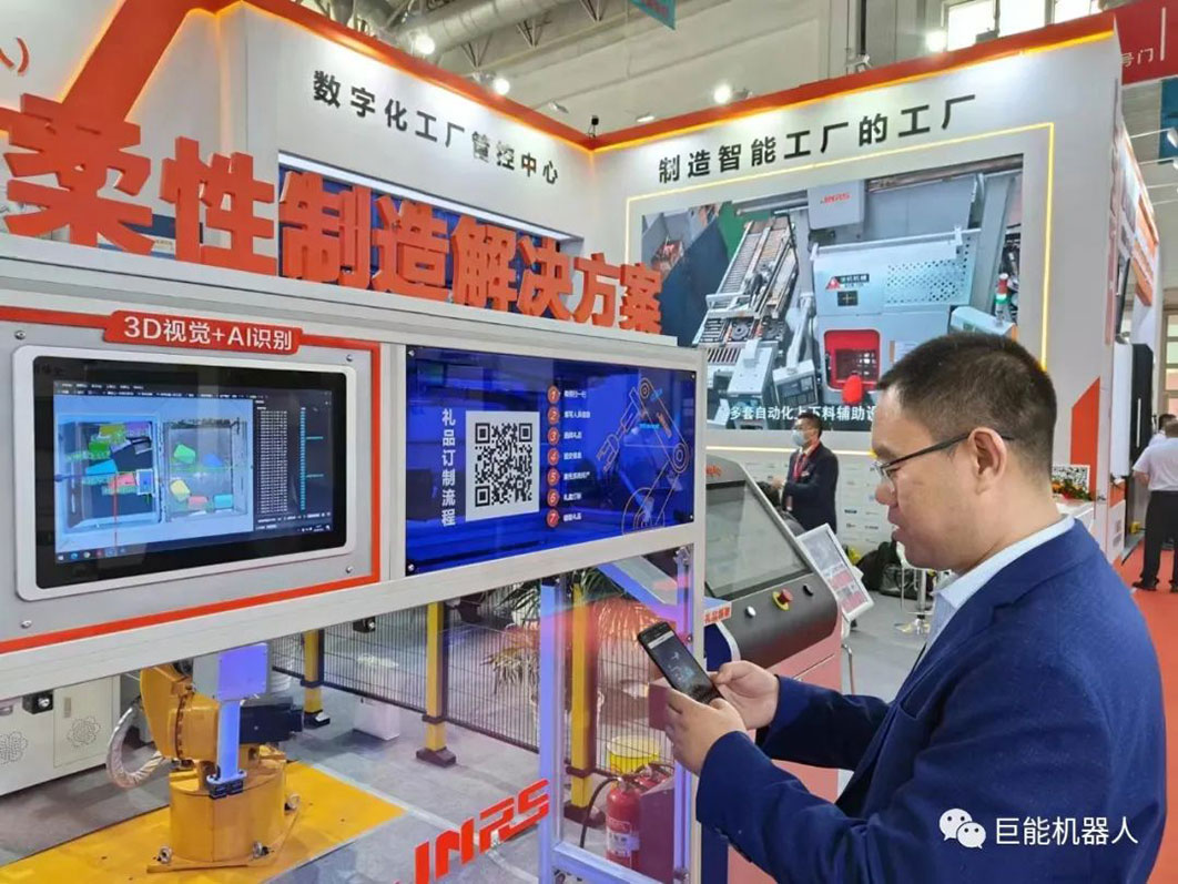 開展首日,位于E館的巨能機器人的展位上人頭攢動,融合通用機床、柔性加工、自動裝卸、智能調(diào)度、自動排產(chǎn)、通用夾具于一體的通用型柔性制造系統(tǒng)解決方案,對于破解多品種少批量生產(chǎn)方式的來賓們給出了“剛?cè)岵钡膱鼍盎鉀Q方案。