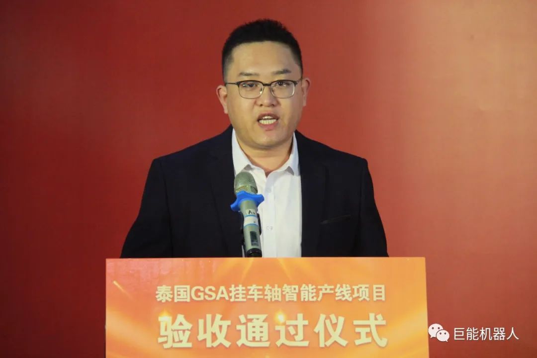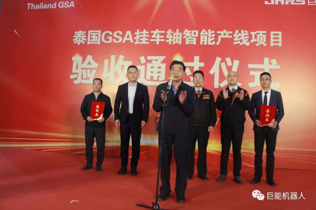 4月27日上午,“泰國(guó)GSA掛車軸智能產(chǎn)線項(xiàng)目驗(yàn)收通過儀式”在巨能公司舉行,銀川經(jīng)開區(qū)黨工委委員、管委會(huì)副主任樊斌宣布項(xiàng)目正式開機(jī)自動(dòng)運(yùn)行,泰國(guó)GSA項(xiàng)目管理團(tuán)隊(duì)、產(chǎn)線供應(yīng)商伙伴、媒體記者和巨能公司員工共同出席見證。