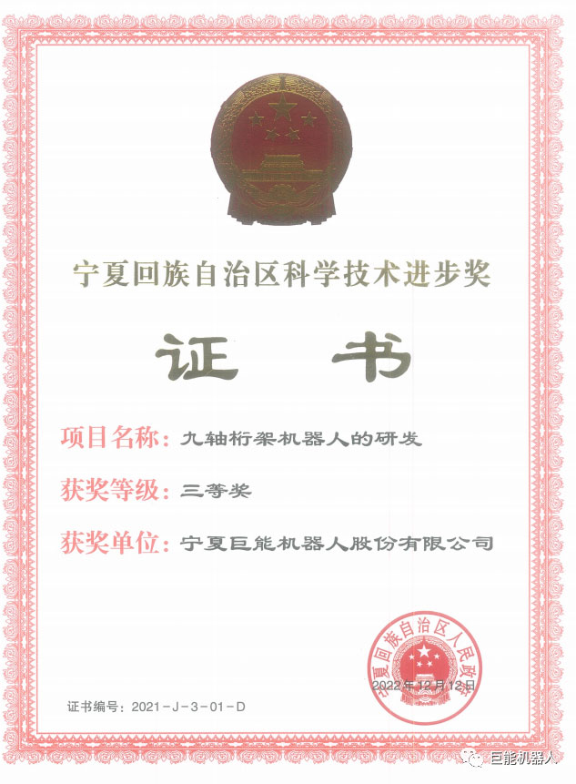其中,《九軸桁架機(jī)器人的研發(fā)項(xiàng)目》榮獲2021年自治區(qū)科學(xué)技術(shù)進(jìn)步三等獎(jiǎng)。
