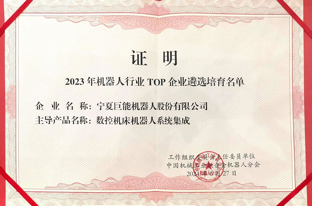 6月27日,2023年度機(jī)器人行業(yè)TOP企業(yè)遴選培育名單發(fā)布及企業(yè)交流會(huì)在京召開,中國(guó)機(jī)械工業(yè)聯(lián)合會(huì)機(jī)器人分會(huì)發(fā)布了2023年機(jī)器人行業(yè)TOP企業(yè)遴選培育公示名單,巨能機(jī)器人憑“數(shù)控機(jī)床機(jī)器人系統(tǒng)集成”產(chǎn)品成功入選。