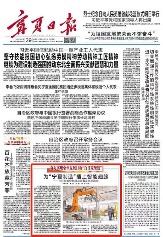 【題記】近日,《寧夏日?qǐng)?bào)》頭版刊發(fā)關(guān)于巨能機(jī)器人的專題報(bào)道,以下為全文轉(zhuǎn)發(fā)。