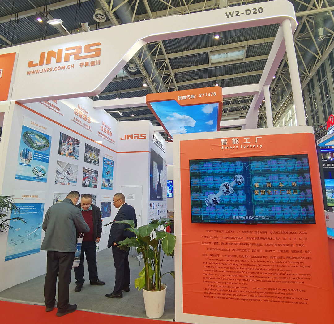 開幕當(dāng)日,寧夏回族自治區(qū)黨委委員、常委、副書記莊嚴(yán)一行蒞臨巨能機(jī)器人公司展位指導(dǎo)布展工作,公司總經(jīng)理李志博就公司發(fā)展和參展準(zhǔn)備情況進(jìn)行了詳細(xì)匯報。本屆鏈博會,巨能機(jī)器人以“制造智能工廠”為展示主題,設(shè)置智能工廠整體解決方案、柔性制造產(chǎn)線解決方案、智能制造新技術(shù)應(yīng)用解決方案三大板塊,通過眾多特色鮮明的實(shí)戰(zhàn)應(yīng)用案例,全面展示公司為制造業(yè)企業(yè)提供智能化產(chǎn)線解決方案的綜合實(shí)力。