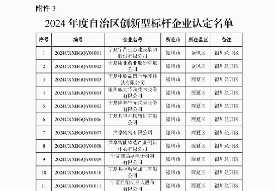 自治區(qū)創(chuàng)新型標桿企業(yè)是寧夏回族自治區(qū)為強化企業(yè)創(chuàng)新主體地位、推動產(chǎn)業(yè)升級而設(shè)立的重要榮譽稱號,旨在培育一批技術(shù)引領(lǐng)作用顯著、行業(yè)影響力廣泛的創(chuàng)新型領(lǐng)軍企業(yè)。
