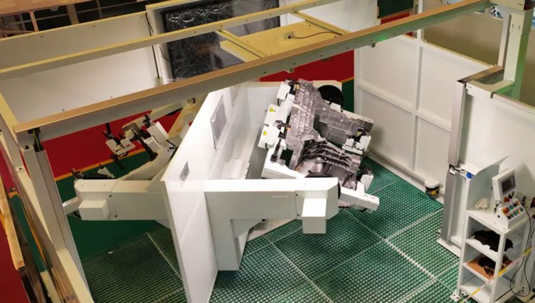 央視新聞視頻中的自動(dòng)化產(chǎn)線(xiàn)正是巨能機(jī)器人為新能源一體化壓鑄零件加工提出的智能制造產(chǎn)線(xiàn)解決方案,該產(chǎn)線(xiàn)于在2024年7月交付給廣東鴻圖,正在連續(xù)穩(wěn)定運(yùn)行。
