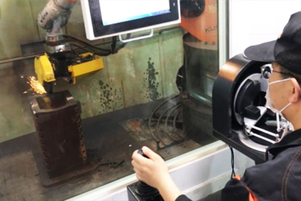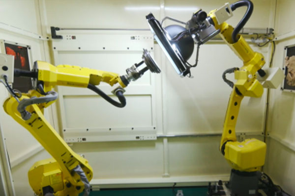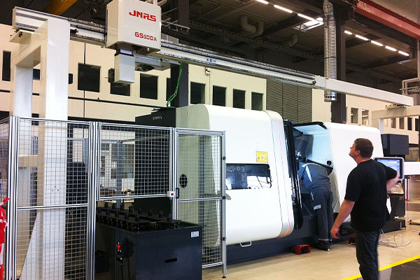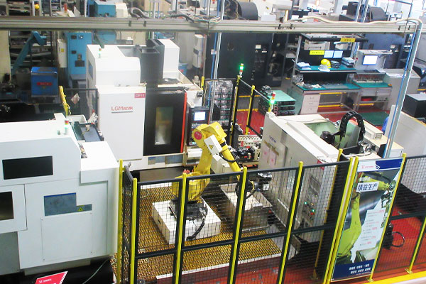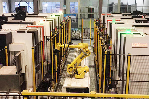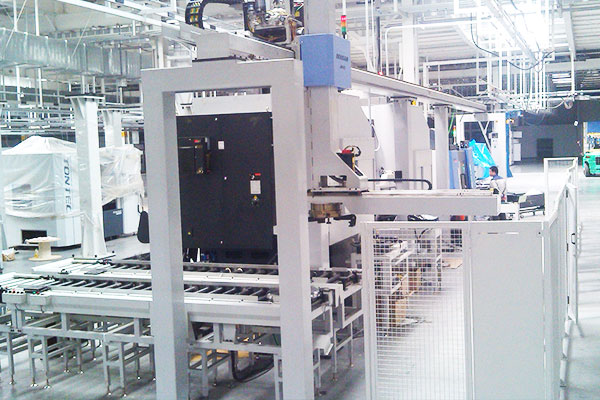 6月,固定安裝工業(yè)機器人,品字形服務(wù)多臺機床,形成工作島